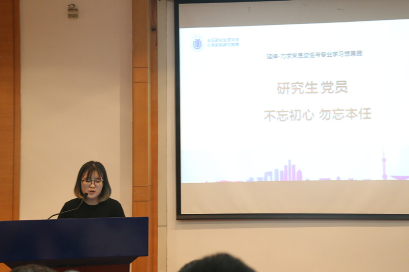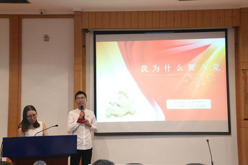来自上海电影学院2016级研究生第一党支部的王铭洲、王家琛和柴欣三位同学以《为什么入党》作为报告主题,为研究生党员上了一课。他们回溯革命战争年代共产党员的先进性,思考在思想浮躁的时代如何重思中共党员入党的初衷,并就“红色信仰危机”为研究对象,对其内涵、存在问题、产生原因和教育途径一一考究。