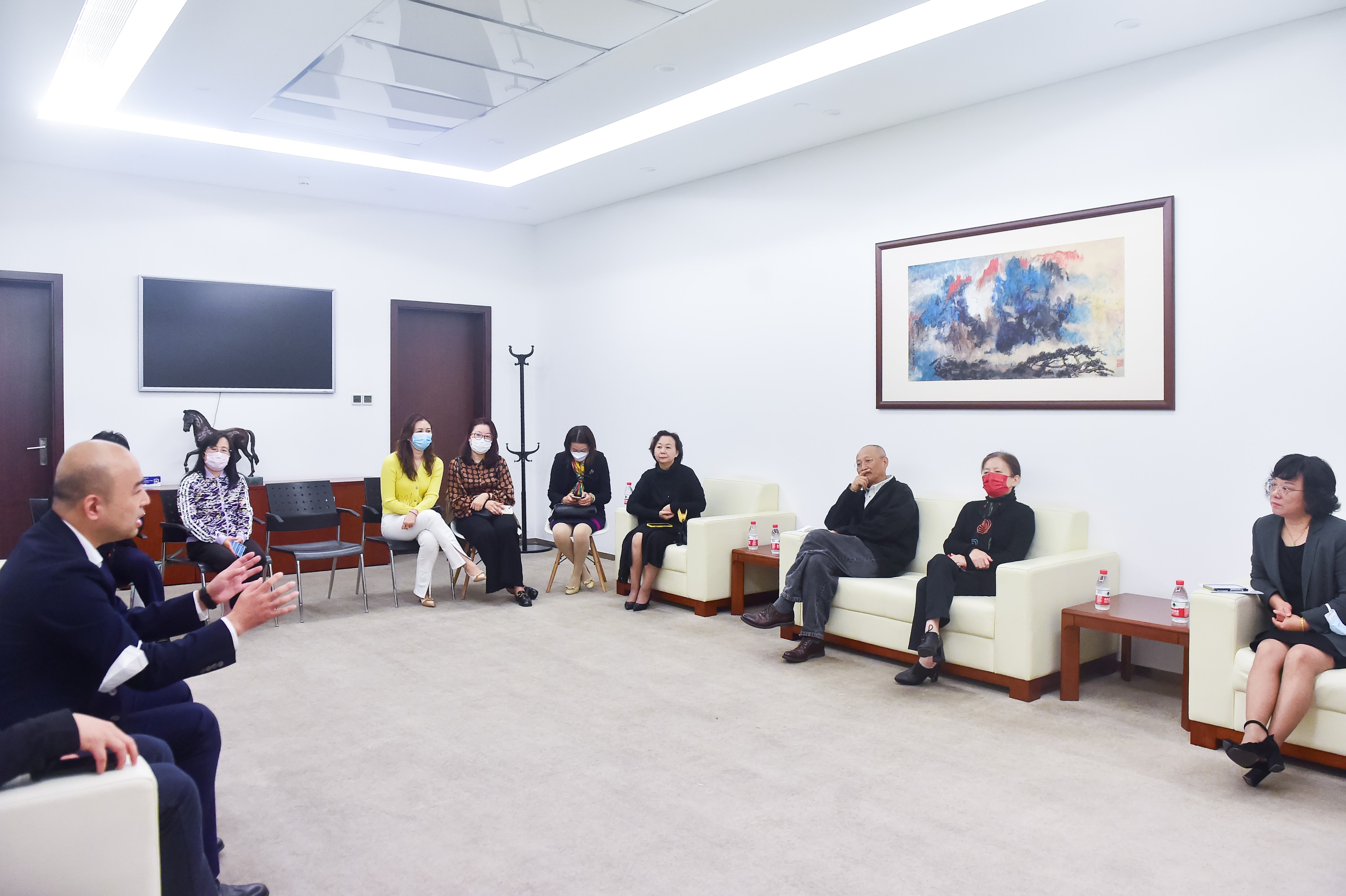 座谈交流由陈静主持。曹俊从书院基本情况、近期工作推进及下一步工作设想作了详细汇报,倪瑜、王智君进行了补充发言。曾成钢、孟祥栋、张基涛、黄欢、孙琦琰、高恺华、姜晓庆等就闳约书院建设发展提出宝贵意见和建议。校党委常委、副校长聂清指出闳约书院地理位置特殊,学生特点鲜明,书院的建设尤其要重视对学生的价值引领,要探索根植于三家专业学院学科体系的书院建构模式,通过深度交流、交锋和融合找寻到闳约书院的“魂”和“神”。要立足静安,依托环上大创意产业聚集的优势资源,擎起创意旗帜,聚焦学生“价值、知识、能力”三位一体培养目标,凝练共性,提升专业学院对书院人才培养的贡献度。要充分发挥学院学科专业特点,精心设计打造书院总部区域的文化氛围,满足学生的学习生活需要。