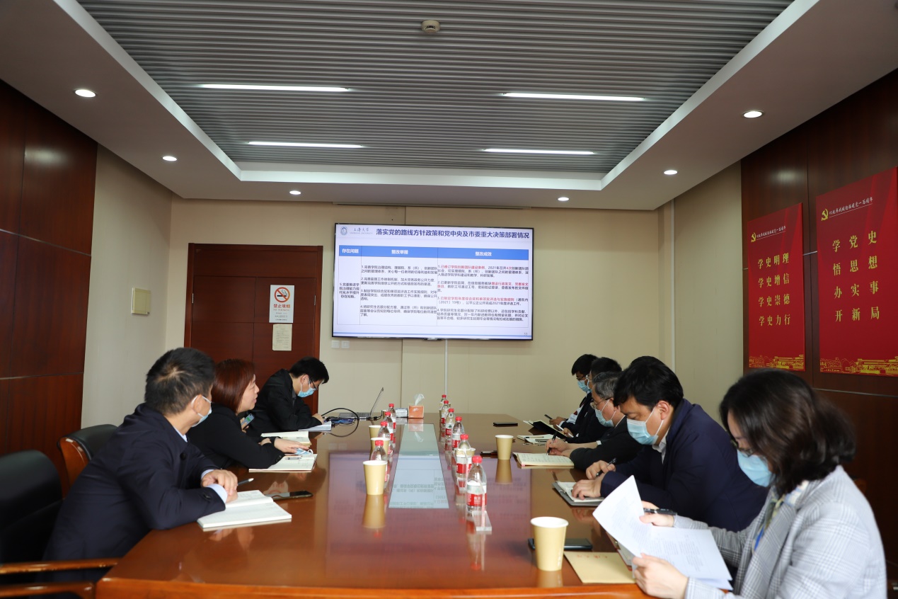 通信学院党委书记黄素娟汇报了学院党委2021年巡察整改完成情况。学院党委高度重视巡察整改工作,切实履行学院党委巡察整改主体责任,党委书记为第一责任人,学院党政班子成员、党委委员、系所领导各负其责,针对11个巡察发现的主要问题,制定了23条整改措施,已全部整改完成。