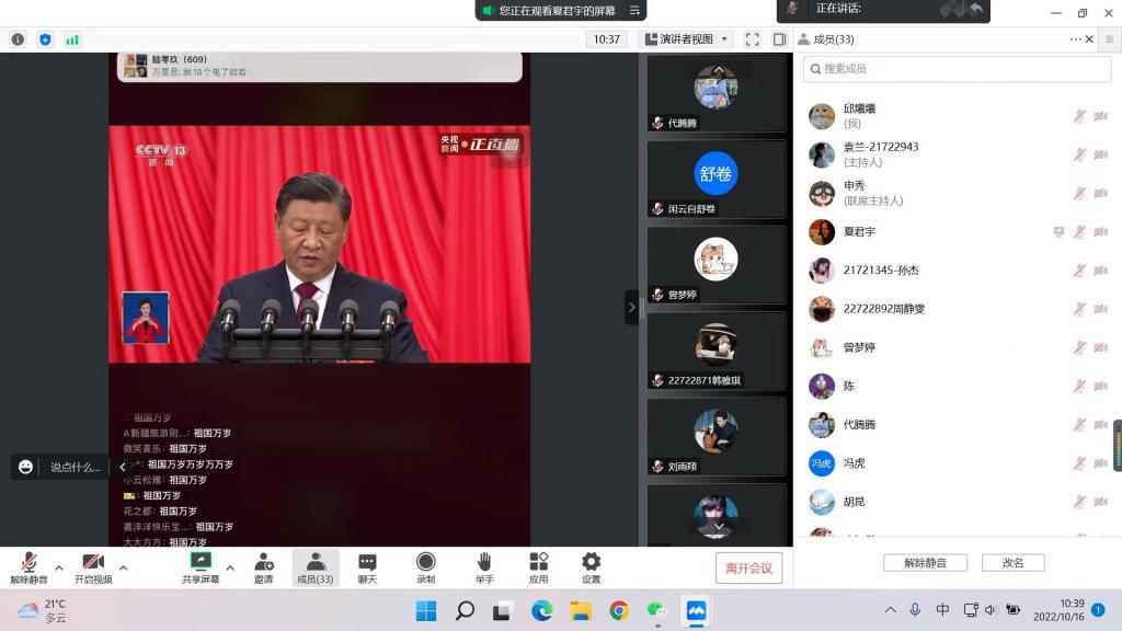 生命科学学院党委书记陈付学表示党的二十大胜利召开,为我们擎画愿景、指明方向,习近平总书记的报告令人倍感振奋、备受鼓舞。我们将把学习贯彻二十大精神作为首要政治任务,守正道而开新局,致广大而尽精微,聚焦学院中心工作,通过引进高层次人才,培养生物专业一流学生,不断向建设成为一流学科而努力;以申报“生物与医药”、“生物医学工程”博士点为契机,调整人才培养方向,提升研究生培养质量,服务于上海生物医药产业发展;通过多渠道丰富创新平台建设,为学生在生物医学等多学科背景发展提供资源和锻炼的机会,提高学生的整体竞争力。展望未来,学院上下将认真学习领会、坚决贯彻落实习近平总书记二十大报告精神,把思想和行动统一到中央的决策部署上,锚定目标、振奋精神、蹄疾步稳、勇毅前行,围绕学校双一流建设,以实际行动献礼党的二十大!