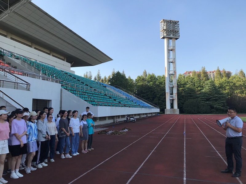 近日,在体育学院支持下,法学院本研国庆趣味运动会在宝山校区K区操场举行,虽然天气炎热,但是丝毫没有影响同学们的参赛热情,近五十名本科生、研究生参加了本次活动。学院党委副书记、副院长于伟老师,团委书记林建玲老师,本科生辅导员王琦老师来到现场进行观赛指导。