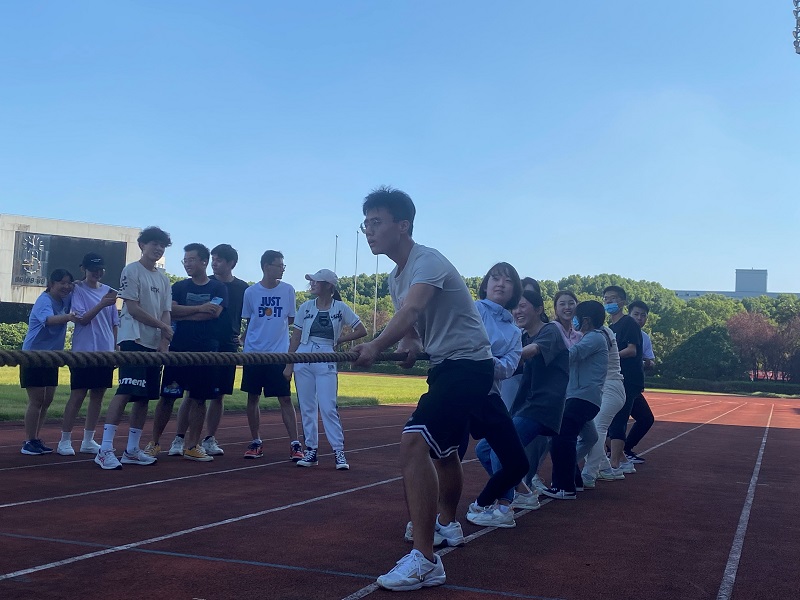 本次趣味运动会一共有三个项目,分别是拔河、跳大绳和旋风跑。同学们分为了四组进行比赛,开始进行冠军的角逐。首先进行的是拔河比赛,选手们通过抽签分成了A、B两队开始比赛。比赛中,选手们都全力以赴,女生们也巾帼不让须眉,奋力拼搏,在旁边观战的老师和同学们也为大家加油鼓劲。在经过两轮的比拼后,第1组夺得了拔河比赛的冠军。