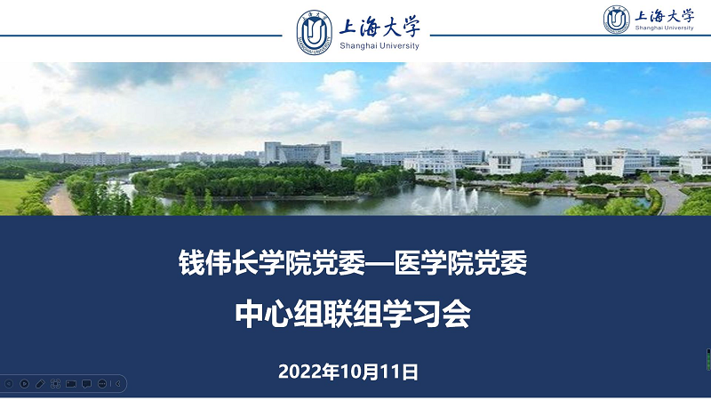 10月11日上午,钱伟长学院党委与医学院党委开展中心组联组学习,双方共同就人才培养工作开展研讨交流。因疫情影响,会议以线下和线上相结合的方式进行。医学院党委书记竺剑,院长刘斌,党委副书记、副院长盛晓娜,副院长姚萱、肖俊杰,副院长(挂职)陈亮,组织员庄薪荣,办公室副主任(主持工作)李珊珊,钱伟长学院党委书记吴蔚,党委副书记、院长周全,党委副书记、副院长沈青松,副院长许新建、任伟,组织员刘佳,办公室主任苏英等参加学习会。会议由钱伟长学院党委书记吴蔚主持。