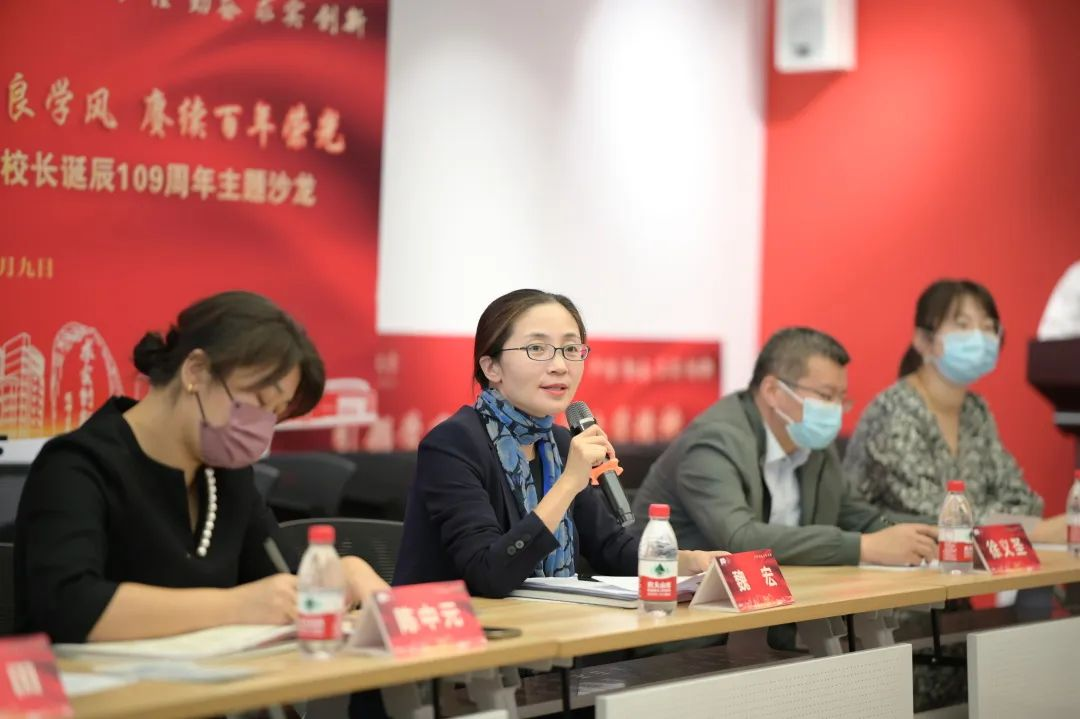 法学院徐田晓、音乐学院张妍、医学院李肖洁、外国语学院王维与环化学院张馨心等同学针对“系好学术生涯第一粒扣子”进行了主题发言,认为我们要以钱伟长老校长等老一辈的科学家精神激励自己,结合自己所学专业,将其运用到生活中,坚守学术操守和道德理念,把学问和人格融合在一起,把学术学风和生活作风联系起来,扣好我们青年学术的第一粒扣子,做一名没有学术污点的快乐学术人。