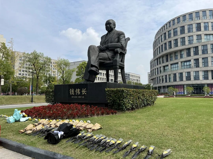 主题活动结束后,大家前往钱伟长老校长雕像处,虔诚地在雕像前献上代表崇敬与怀念的鲜花。鲜花不仅代表着师生们对钱伟长校长的缅怀之情,更表达对钱老许下的一份深厚承诺。