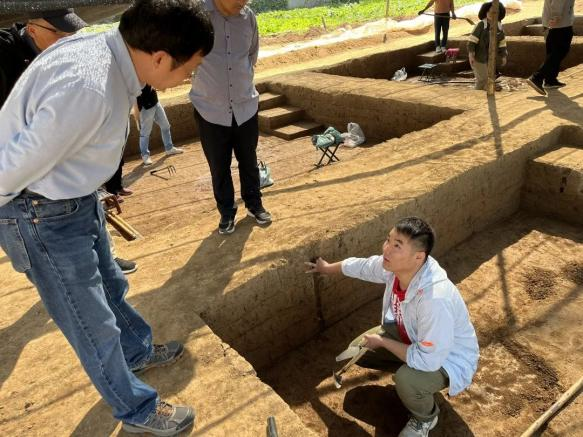 段勇教授亲切慰问正在实习的各位同学,到每个探方前询问同学们的工作和学习情况,听取探方发掘进展并给出指导性意见。其后,段勇教授前往工作驻地,详细了解同学们的饮食起居等生活情况,嘱托两位带队老师在严格要求指导学生的同时也要细致贴心地做好后勤保障工作,使同学们度过一段难忘的实习时光。