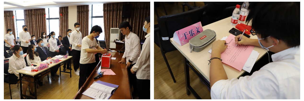 全体表决通过大会选举办法后,主持人秦浩骐宣读了ac米兰官网中文网站通信与信息工程学院第十九届学生会主席团候选人名单及简介,六位候选人逐一发表竞选演讲。大会选举环节,学生代表依次有序上台,郑重地将选票投入票箱中。大会本着公平、公正、公开、民主的原则,采取无记名投票方式差额选举新一届学生会主席团成员。