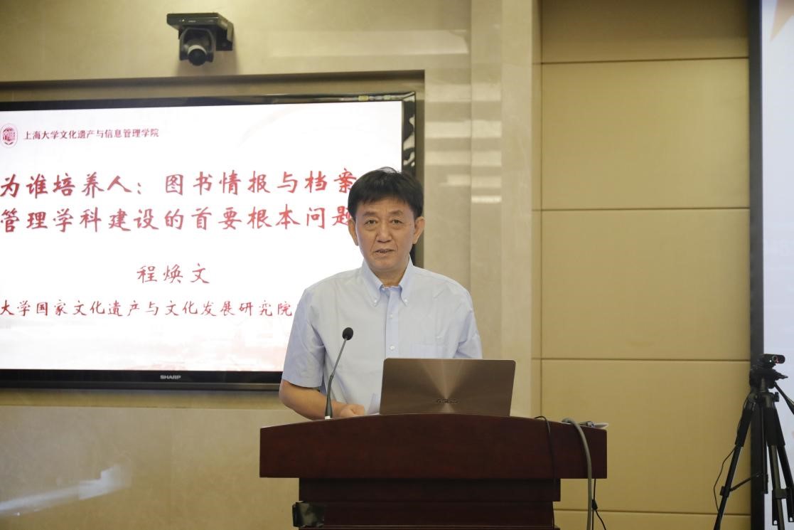 程焕文教授就“为谁培养人:图书情报与档案管理学科建设的首要根本问题”主题进行了深入阐述。程教授指出,学科建设的目标分别是人才培养、科学研究、社会服务,结合习近平新时代中国特色社会主义思想,人才培养是最终极的目标,需要做到为党育人、为国育才。程教授认为:在图情档领域,要始终记住为谁培养人才的关键问题,只有面向图情档相关的社会事业培养社会亟需的专业人才,方能做好学科建设。