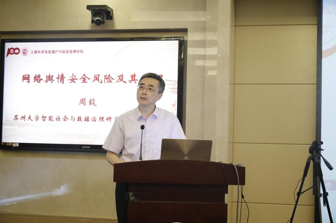 周毅教授的报告题目是“网络舆情安全风险及其治理”。周教授认为,网络舆情安全风险及其治理是与总体国家安全观紧密关联的。围绕报告主题,周教授讲授了“网络舆情安全风险的生成”、“我国当前网络舆情安全风险治理现状和存在问题”、“网络舆情安全风险治理”三方面内容。