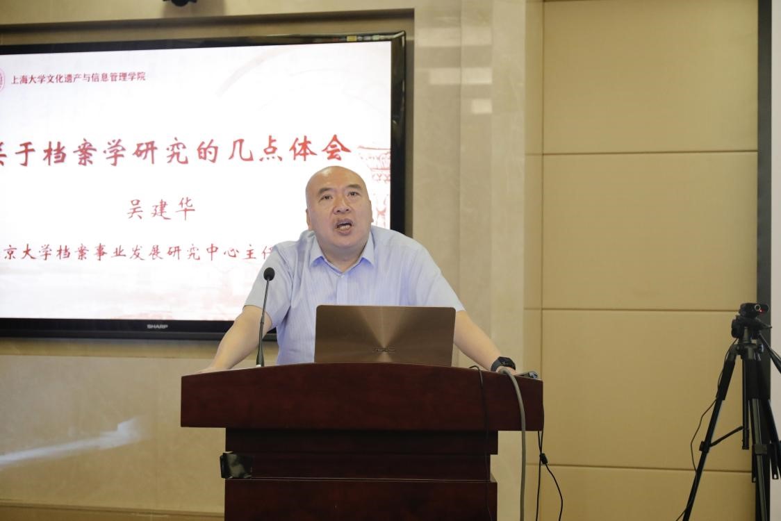 吴建华教授讲授了“关于档案学研究的几点体会”,主要包括:“人类社会的实践活动是档案学研究的水之源、木之本”,“调查研究是档案学研究的基本方法”,“选准方向、长期跟踪,是档案学研究的重要路径”,“重视横向项目、积极主动服务社会发展和经济建设”,“全维度、全过程破解档案工作中的难题”。