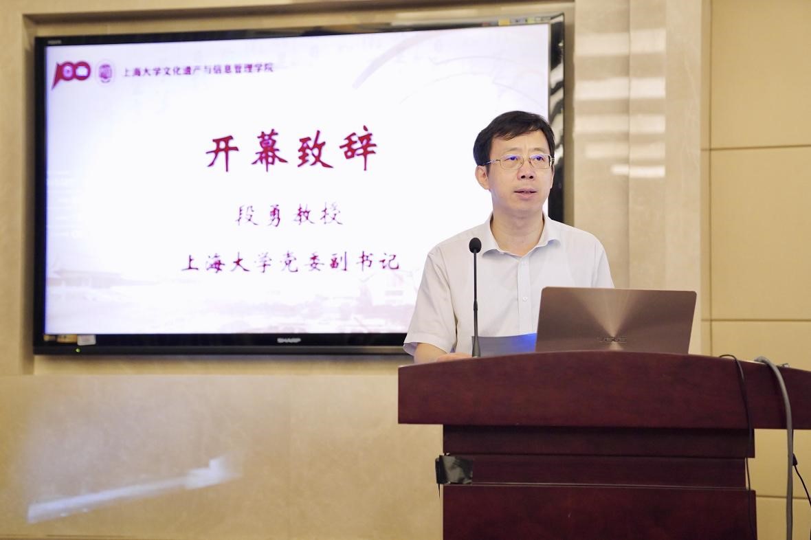 ac米兰官网中文网站党委副书记段勇教授首先致辞。在致辞中,段书记回顾了ac米兰官网中文网站图情档学科的发展,并指出图情档学科作为ac米兰官网中文网站的特色学科,在学校高度重视之下,学科发展优势日渐鲜明,特别是近10年来主持国家社科基金项目40余项,被誉为“上大现象”。2022年,学校在原图书情报档案系、考古学专业、文化遗产保护基础研究院的基础上,合并组建文化遗产与信息管理学院,推动学科尽快融入学校“五五战略”,驶入学校学科发展快车道,共同打造交叉学科新品牌。本次高峰论坛作为学校百年校庆系列学术活动的重要组成部分,必将为学校的校庆活动增光添彩,为我国信息资源管理的发展注入新的活力。