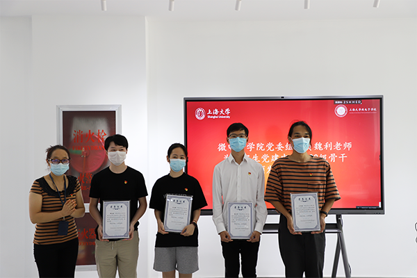 会议第三项议程,微电子学院党委组织员魏利老师为研究生党建中心2020级骨干颁发荣誉证书。