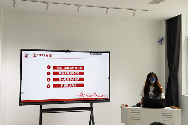之后,由微电子学院机械工程研究生党支部书记蒋洁薇做科创竞赛主题分享。蒋洁薇、张文魁所在学生团队获得了ac米兰官网中文网站第十三届“自强杯”大学生创业大赛金奖和多项市级竞赛成果。她主要介绍了项目组队、作品要求解析以及PPT制作答辩等。她还分享了参加科创赛事的独到见解和心得体会,并鼓励同学们积极参加科创比赛。