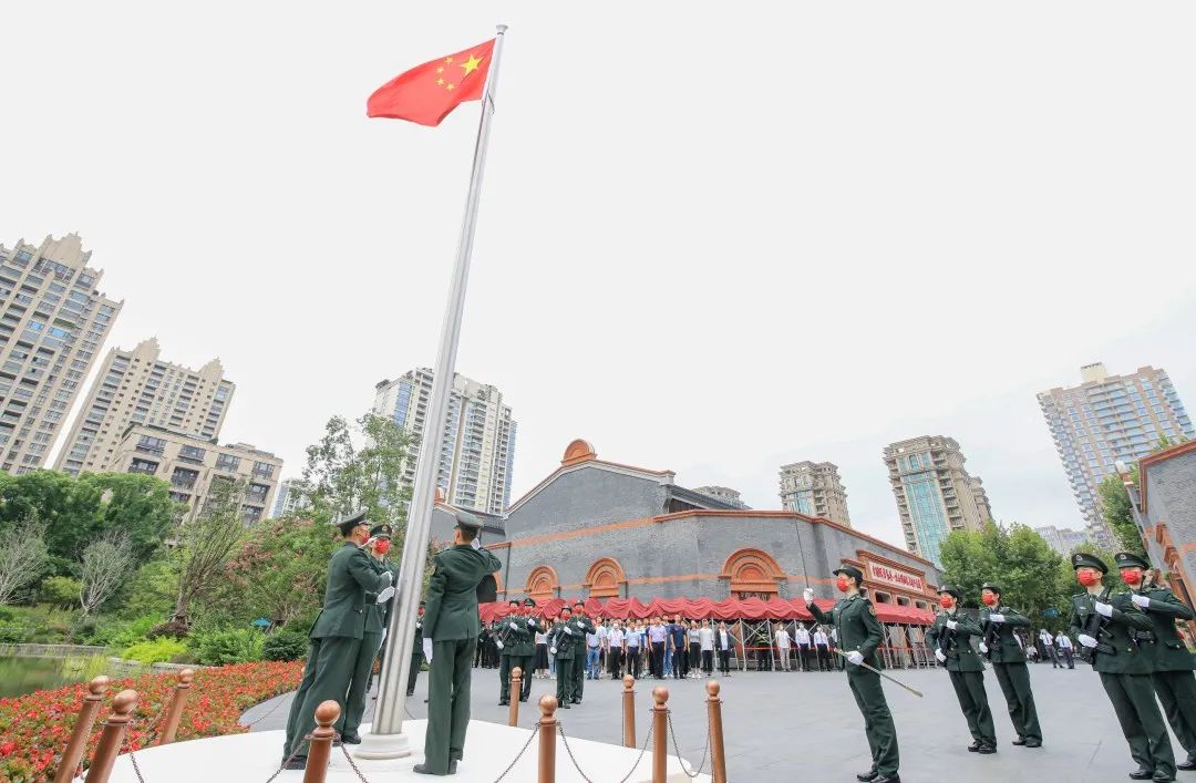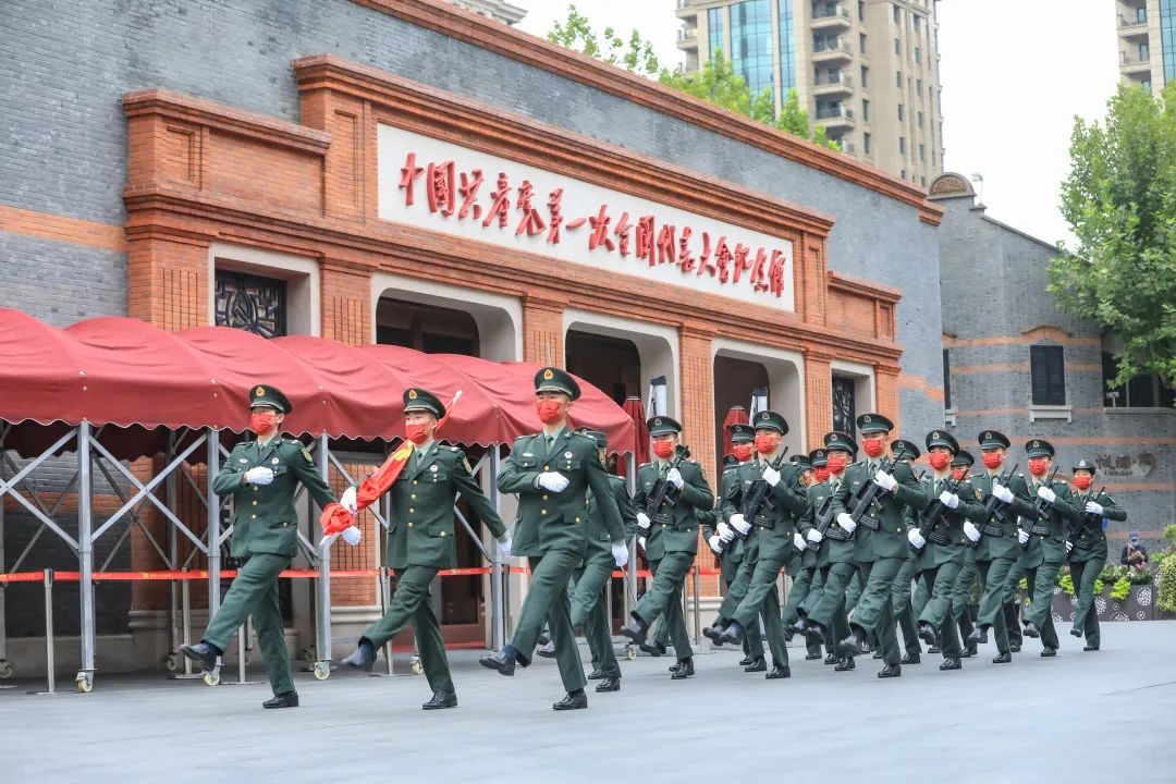 迎着金秋的朝阳,由ac米兰官网中文网站国旗仪仗队组成的护旗方阵,高举鲜艳的五星红旗入场,全场人员肃立。伴随着雄壮的《义勇军进行曲》,五星红旗冉冉升起,迎风飘扬在中共一大纪念馆上空,现场气氛庄严而热烈。
