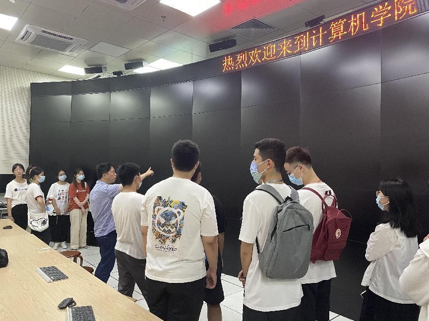 9月9日上午,计算机学院2022级本科新生前往计算机学院进行参观,了解学院各层基本功能并参观了学院的重点实验室:大数据可视化平台——中国视云大屏、高性能计算中心——自强4000超级计算机,网络空间安全实验室与ACM创新实验室等。在参观过程中,同学们对于学院的科技前沿与研究发展动态有了进一步的认识。学院副院长李晓强希望,“让学生看看最新的科研成果,激发他们的学习兴趣。希望他们在基础课上枯燥地写代码时,能用未来学以致用的图景激励自己。”