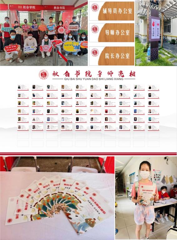 在本次迎新过程中,秋白书院特为新生设计了带有书院院训和Logo的文件夹以及有趣味标语和欢迎语的KT板,供新生初来书院时进行合影留念。与此同时,书院精心布置一楼大厅,设计制作导师墙,院长室、导师室挂牌“营业”,为新生营造出秋白书院之“家”。