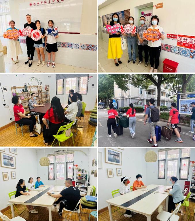 迎新当天,秋白书院全程导师代表来自机关党委的陆瑾、社会学院的庞保庆和赵宇阳三位老师第一时间进驻书院导师办公室,与结对宿舍学生畅聊大学规划,详细了解新生的入校情况与学习生活情况,并对未来的学习生涯规划等提出针对性建议和指导。与此同时,在新生报到点位上,秋白书院的导生们也热情似火,及时帮助新生答疑解惑、搬运行李,让报到的新生感受到书院温暖的人文关怀。