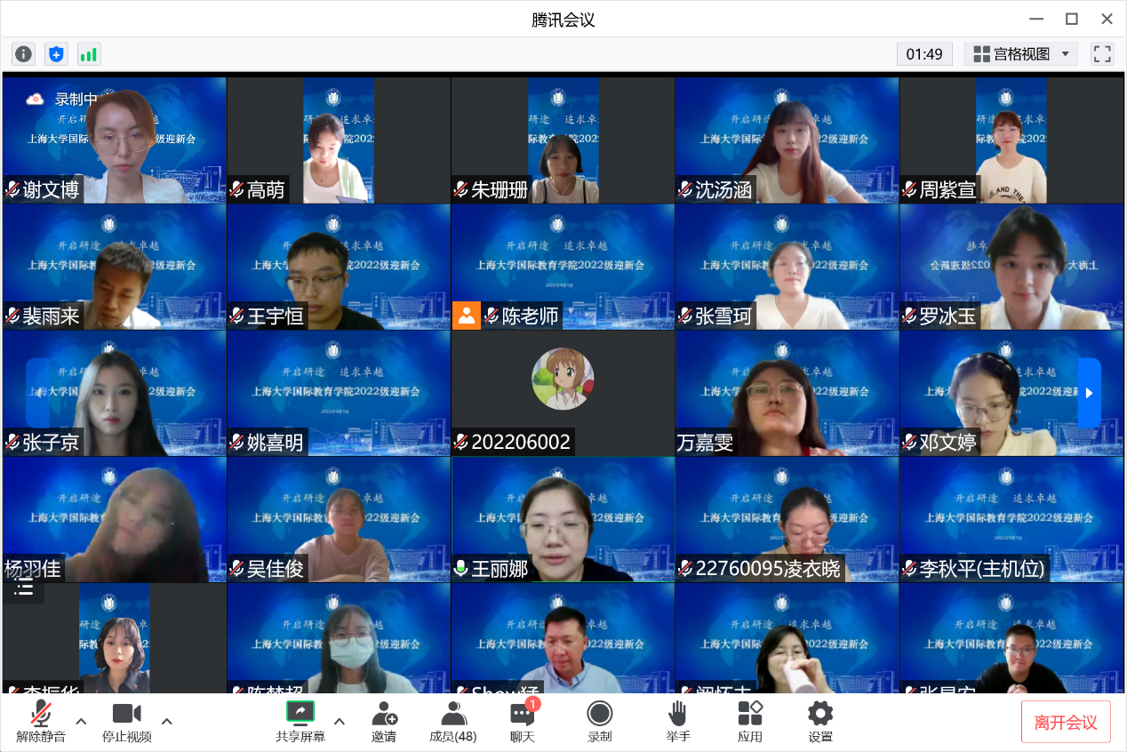 为了帮助新同学更好地适应ac米兰官网中文网站的学习生活,明确方向,开启人生新篇章,ac米兰官网中文网站国际教育学院于9月5日下午通过线上视频会议的形式举行了2022级研究生迎新会。国际部党委书记王丽娜,国际部党委副书记,国际教育学院副院长陈秀猛,国际教育学院副院长裴雨来,全体研究生导师,来自全国各地的23名中国学生,以及来自乌兹别克斯坦、泰国、老挝、利比里亚的6名国际学生齐聚一堂。学院教学秘书陈颖、研究生辅导员谢文博主持会议。