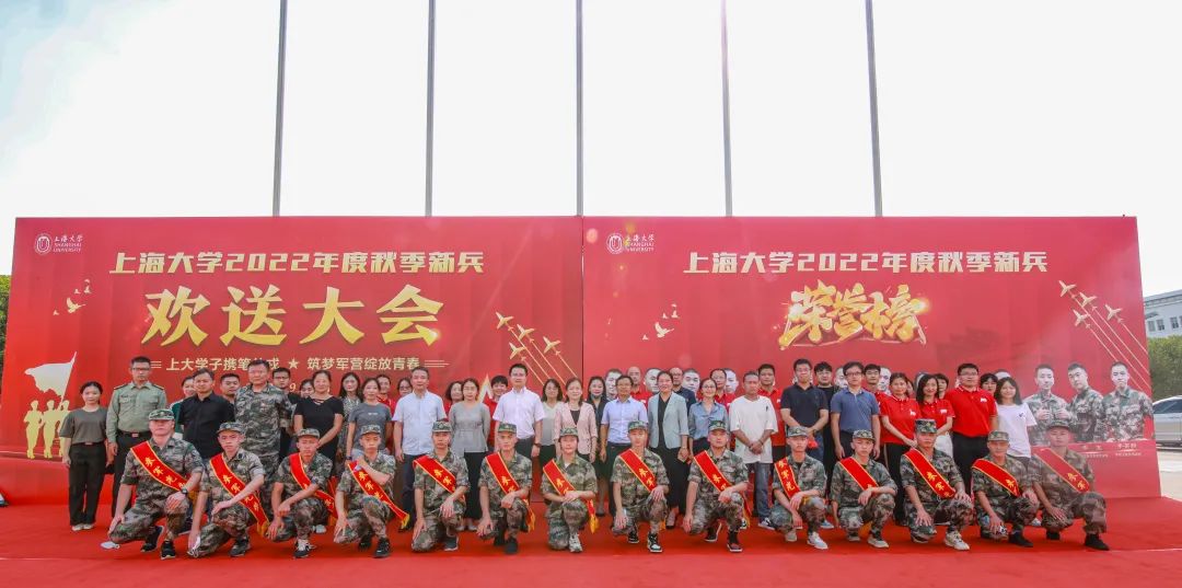 欢送大会在所有参会人员共同唱响的强军战歌中落下帷幕。与会师生与入伍新兵在行政楼前合影留念,并目送新兵们登车离校,踏上人生新的征途。