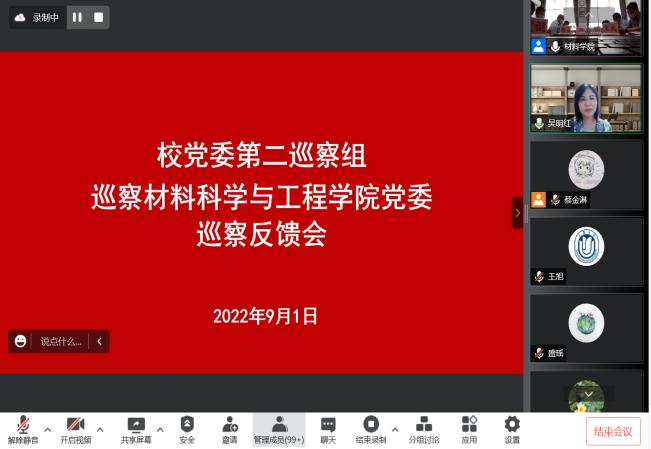 9月1日,材料科学与工程学院党委召开巡察情况反馈会。校党委常委、副校长吴明红,校党委第二巡察组全体成员、巡察办副主任胡瑜、纪检监察员李岩、组织处党建主管王武、材料科学与工程学院党政领导班子成员、师生代表参加会议。