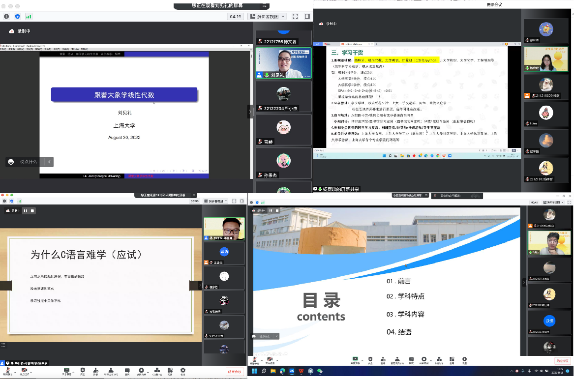 面对即将开启的大学生活,2022级新生们也有着许多疑问。为此,学院课外培养中心和部分班级推出“成长适应性课程”,邀请不同年级、不同专业的优秀朋辈接力分享经验,如已直研南京大学、理学院18级本科生杨嘉玟分享“大一这么过”;校长奖学金特等奖获得者、材料学院19级本科生张翀昊分享“立志·逐梦·前行”;校长奖学金获得者、文学院18级本科生陈昕分享保研经历和大学的规划;理学院学生会主席、19级本科生周欣怡分享如何平衡学习、生活、科研和工作;通信学院20级专业排名第一的郭博慧分享自我管理方法;计算机学院19级的邓雲峰讲授计算机C语言和python的学习方法。部分班级的优秀导生还同步开设了相对应的辅导课程,如22级新生导生刘萱、瞿嘉磊、张浩轩、兰雅迪讲授的身心健康教育等。朋辈分享内容覆盖了ac米兰官网中文网站红色文化、校园制度、身心健康、学业目标制定、学习方法、课程知识、科研发展、生涯规划以及时间管理等大学生最关心的问题。