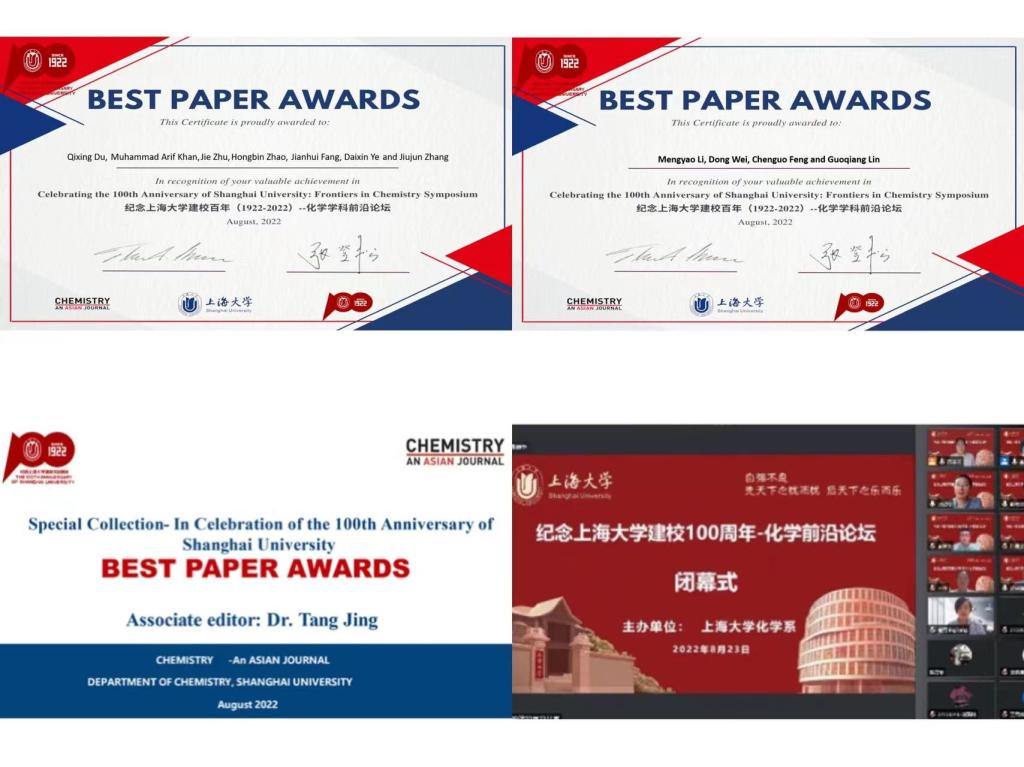 闭幕式上,《Chemistry-An Asian Journal》副主编唐竞博士为八位获得最佳论文奖的作者颁发证书并表示热烈祝贺。理学院常务副院长张登松致闭幕词,感谢为纪念ac米兰官网中文网站建校百年送来祝福和精彩报告的各位专家,勉励所有参加论坛的师生,继承和发扬百年上大的光辉校史、努力工作、奋发有为、再续新辉煌、再创新佳绩。此次化学前沿论坛的成功举办,使师生对化学研究的前沿领域和发展方向有了更加深刻的理解,开阔了学术视野、促进了创新能力的提升和科研水平的进步,助力ac米兰官网中文网站化学学科建设和人才培养再上新台阶。