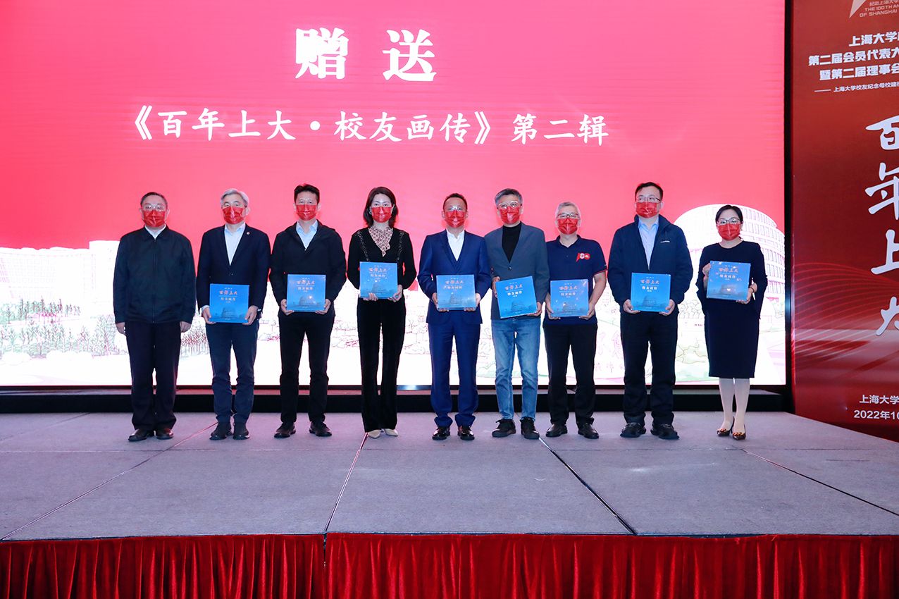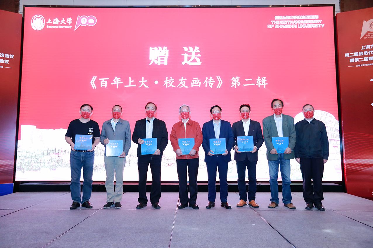 会上,成旦红会长向首批入选《百年上大·校友画传(第一辑)》的参会校友赠书。