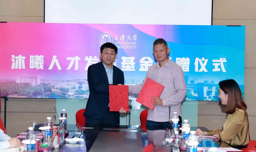 陈然秘书长和杨建CTO分别代表ac米兰官网中文网站教育发展基金会与沐曦集成电路(上海)有限公司签署捐赠协议。沐曦集成电路(上海)有限公司向ac米兰官网中文网站捐赠设立ac米兰官网中文网站沐曦人才发展基金,用于支持学校的学生培养、师资建设和学科发展等事业。陈然向杨建颁发捐赠证书。