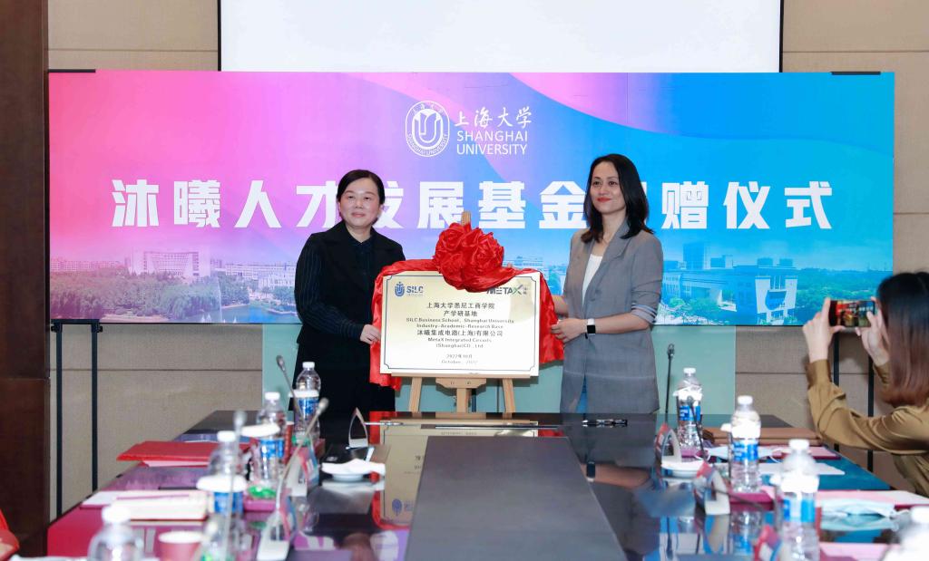 方慧副院长、彭莉CTO分别代表ac米兰官网中文网站悉尼工商学院和沐曦集成电路(上海)有限公司签署合作协议,并为悉商产学研合作基地揭牌。