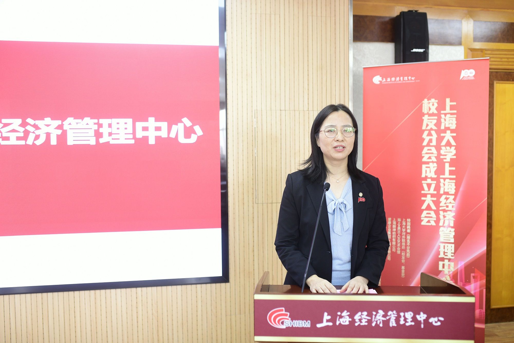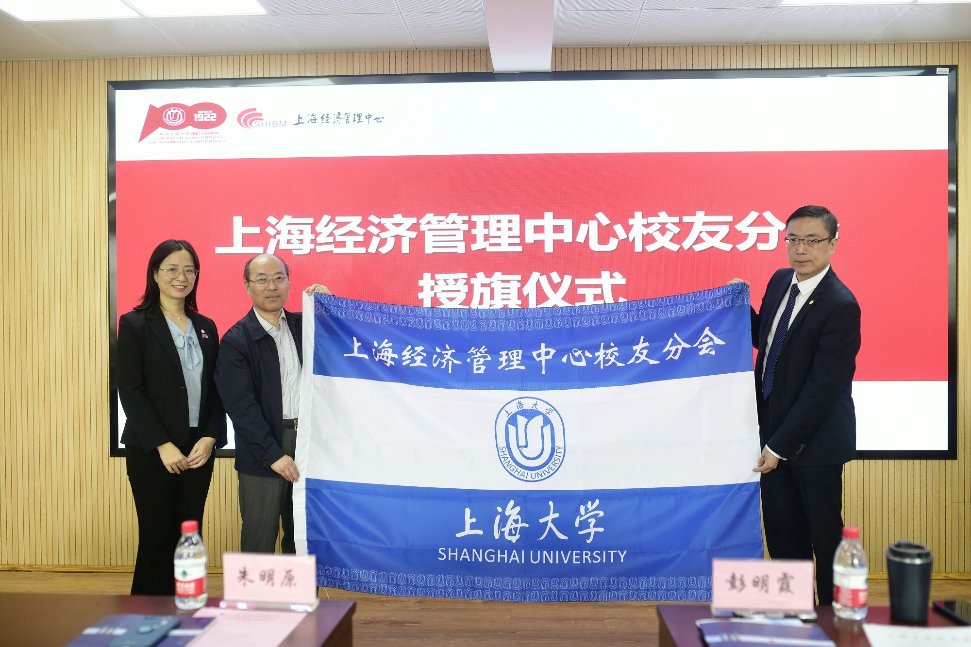 ac米兰官网中文网站对外联络处副处长、校友办副主任彭明霞宣读《关于同意成立ac米兰官网中文网站上海经济管理中心校友分会的批复》后,代表学校校友会向中心校友分会授旗,中心主任朱明原、副主任孟添代表校友分会接受授旗。