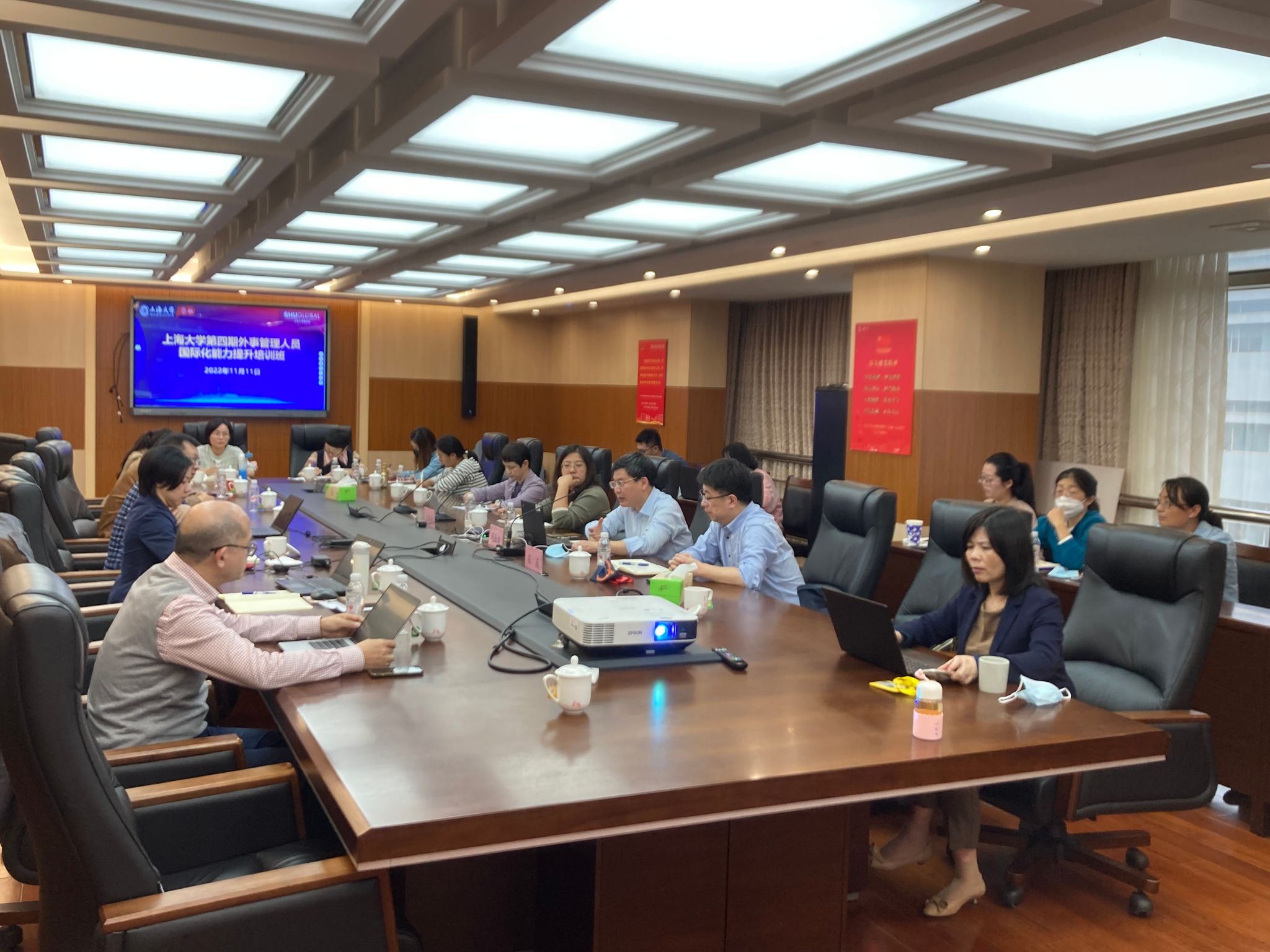 11月11日下午,ac米兰官网中文网站第四期外事管理人员国际化能力提升培训班在行政楼501会议室举办主题讲座。上海市教委国际合作处处长周勤健、ac米兰官网中文网站马克思主义学院孙会岩副教授受邀分别作《高质量推进教育对外开放》、《认真学习领会党的二十大精神,以中国式现代化全面推进中华民族伟大复兴》的专题报告。第四期培训班学员及国际部员工通过线上线下结合的方式共同参加了本次会议。