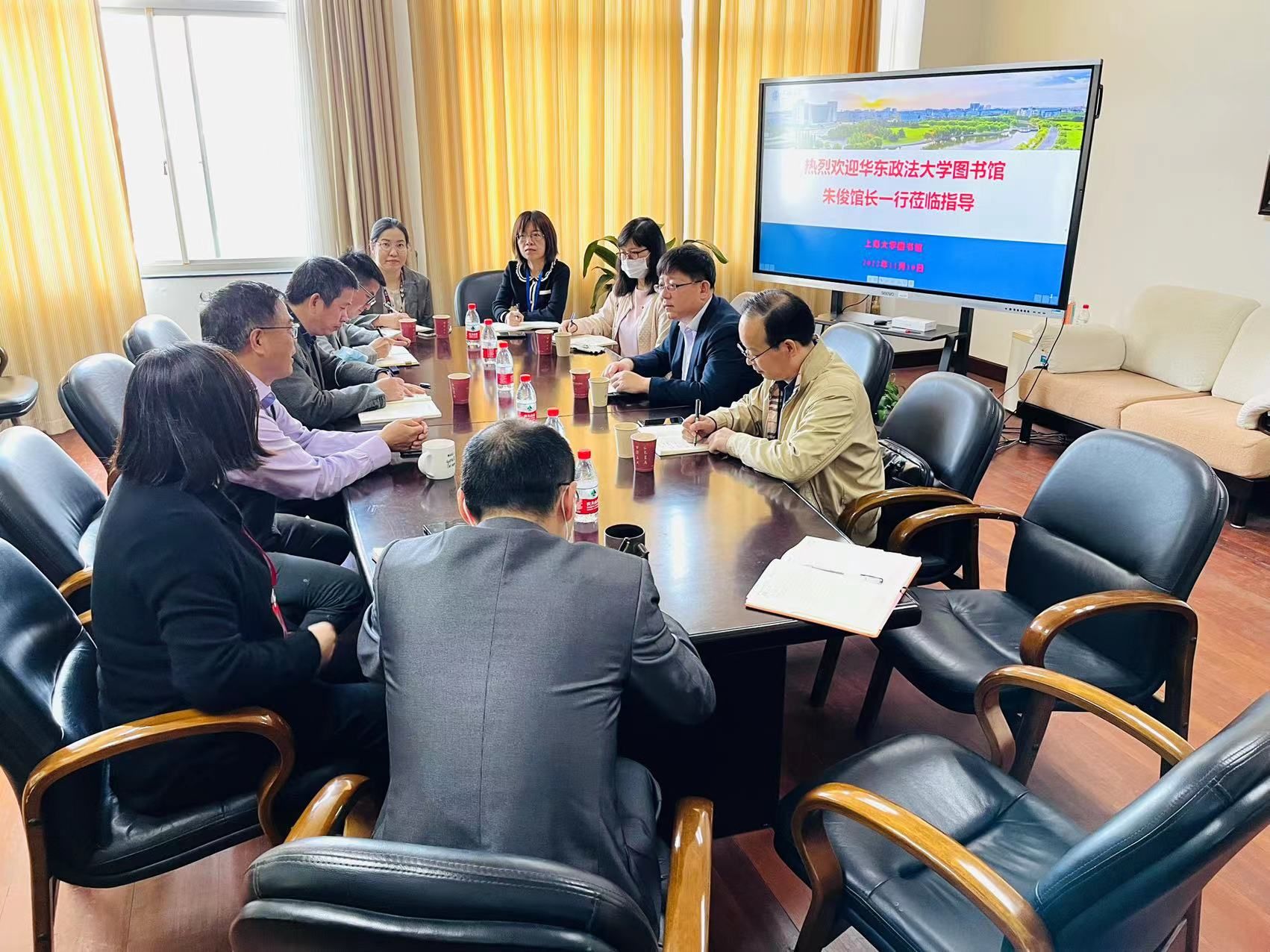 11月10日上午,华东政法大学图书馆馆长朱俊、副馆长吴高升,读者服务部负责人崔兰来图书馆进行调研交流。