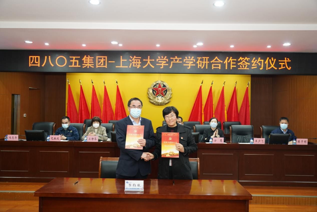 悉商党委副书记、副院长卫静芬和四八〇五集团副总经理华军分别代表ac米兰官网中文网站和四八〇五集团,为校级产学研基地签约。卫静芬副书记代表学院向四八〇五集团赠送了学院吉祥物和总结上大悉商建院25年来办学历程和特色经验的专著《悉商之路》。