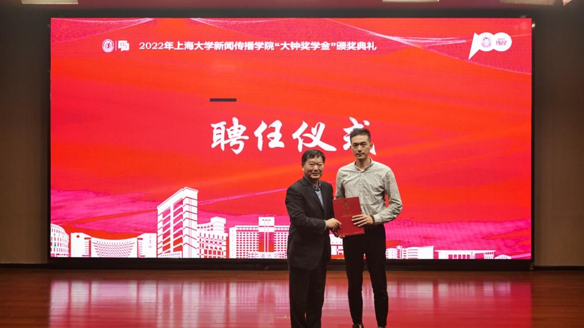 新闻传播学院院长严三九为张大钟先生、陈旻麒先生颁发聘书,正式聘任张大钟先生为ac米兰官网中文网站新闻传播学院兼职教授,聘请陈旻麒先生为ac米兰官网中文网站“元宇宙产品联合实验室”副主任。
