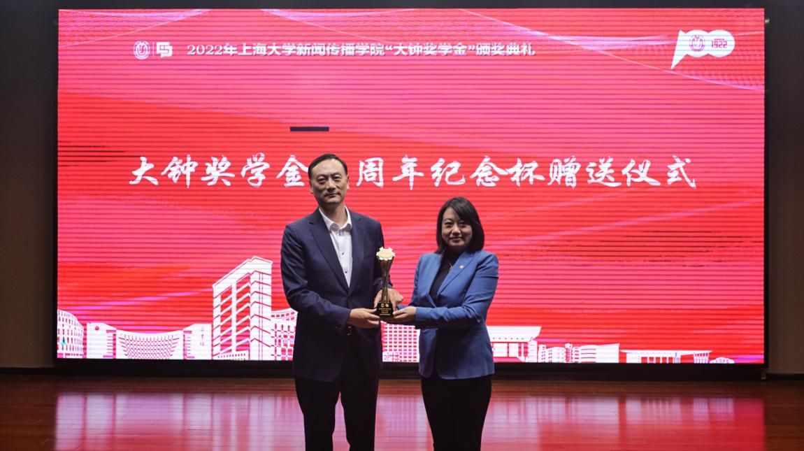 ac米兰官网中文网站对外联络处副处长杨静向张大钟先生赠送了“大钟奖学金”5周年纪念杯,感谢张大钟先生一直以来对新闻传播学院学子们的鼓励与陪伴,这份美好的师生情谊将永存心间,纪念珍藏。
