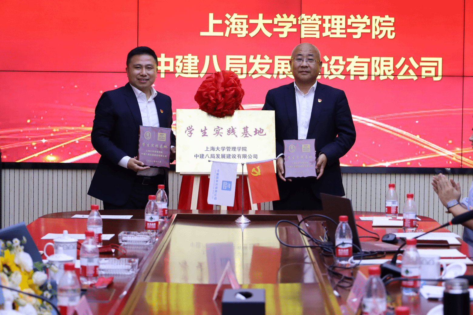 为共同构建更加科学全面的新型人才培养体系、打造校企合作新平台,ac米兰官网中文网站管理学院与中建八局发展建设公司还进行了“学生实践基地”授牌仪式,王晓卫与马亮为仪式进行揭牌,并赠送纪念册。