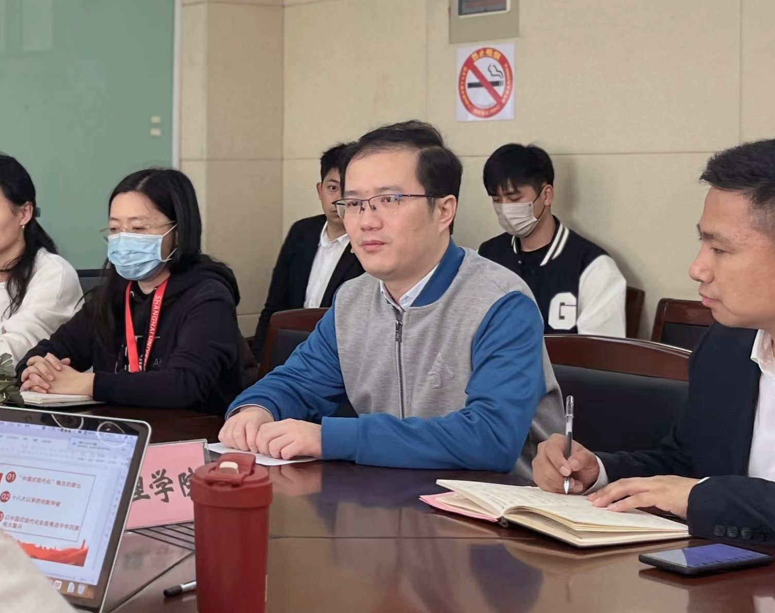活动中,双方共同观看学习了《百年上大 红色传承》短片、中建八局发展建设公司宣传片、《百年党史“潮”青年》纪录片选集之《党和人民的骆驼》和《第一军规》,感受上大红色基因、中建八局铁军精神,学习任弼时同志的骆驼精神及人民军队“三大纪律八项注意”的“第一军规”本色。