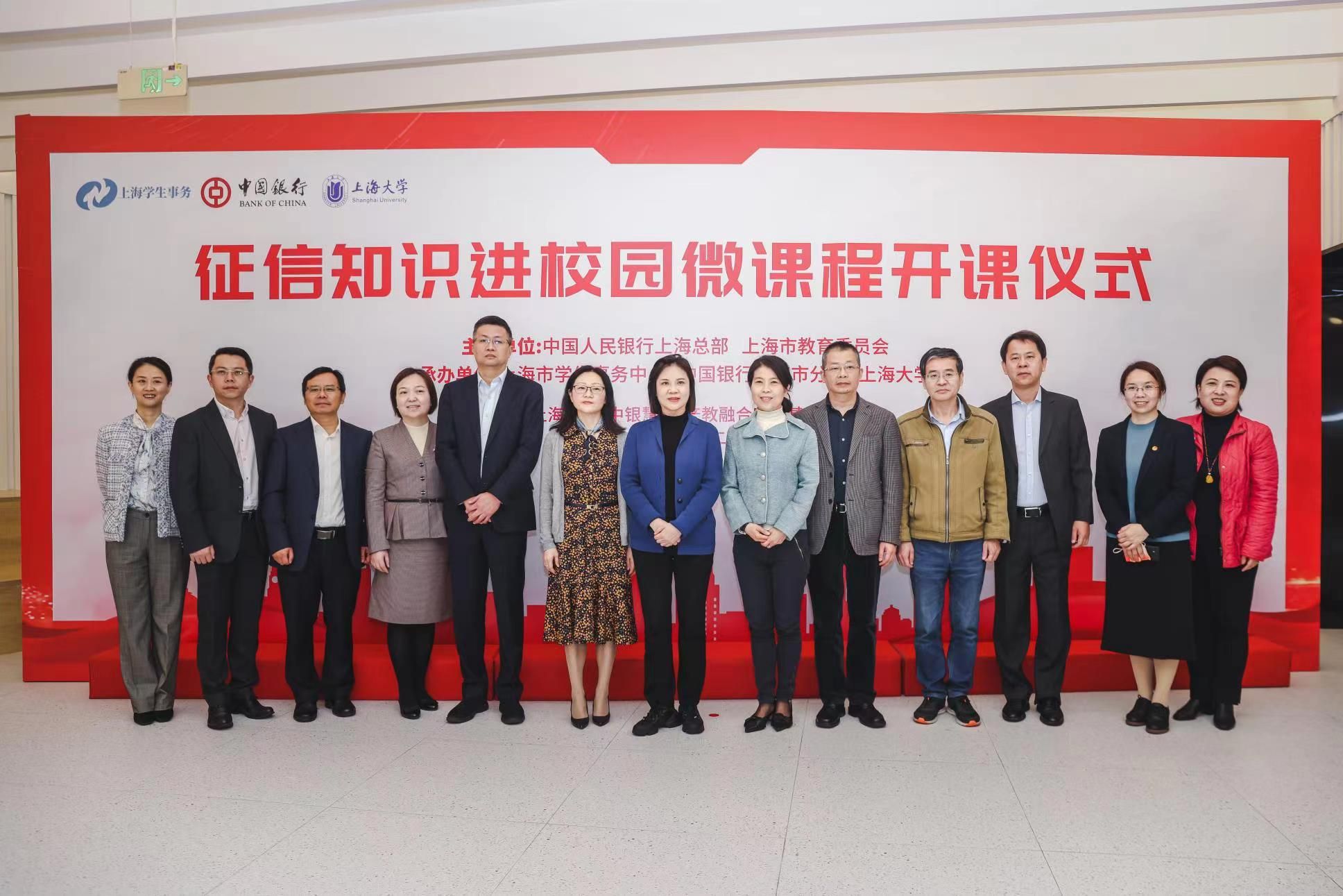 11月29日上午,由中国人民银行上海总部、上海市教委牵头主办,上海市学生事务中心指导,中国银行上海市分行、ac米兰官网中文网站联合承办的征信知识进校园微课程开课仪式在ac米兰官网中文网站中银慧谷举行。