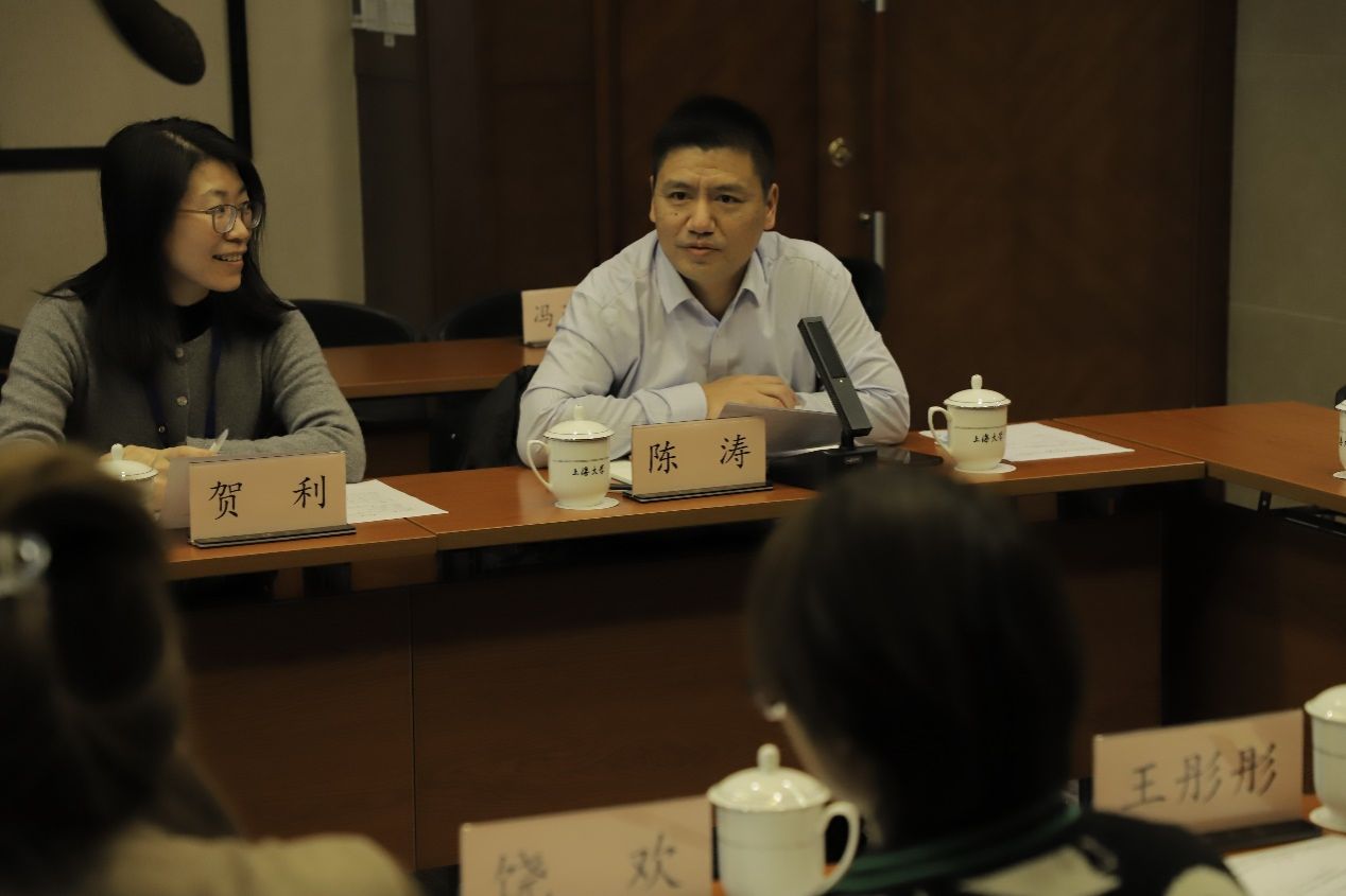 随后,陈涛老师就人才培养、疫情状况下如何更好的开展就业工作与各个公司进行了详细的研讨交流,海康威视饶欢老师、汉得信息陆娣老师、华测导航胡柯武老师、上海联通王彤彤老师、上海移动王倩琼老师、中兴校友吴世豪分别就各自公司的基本框架、近几年的招聘方向及校企合作情况作了简单的介绍,对通信学院以及学校的人才培养方案提出了宝贵的意见,并且希望双方能够寻找更多的校企共同目标,促进校企双方更好地发挥各自优势,将人才培养及“就业攀登”落到实处。