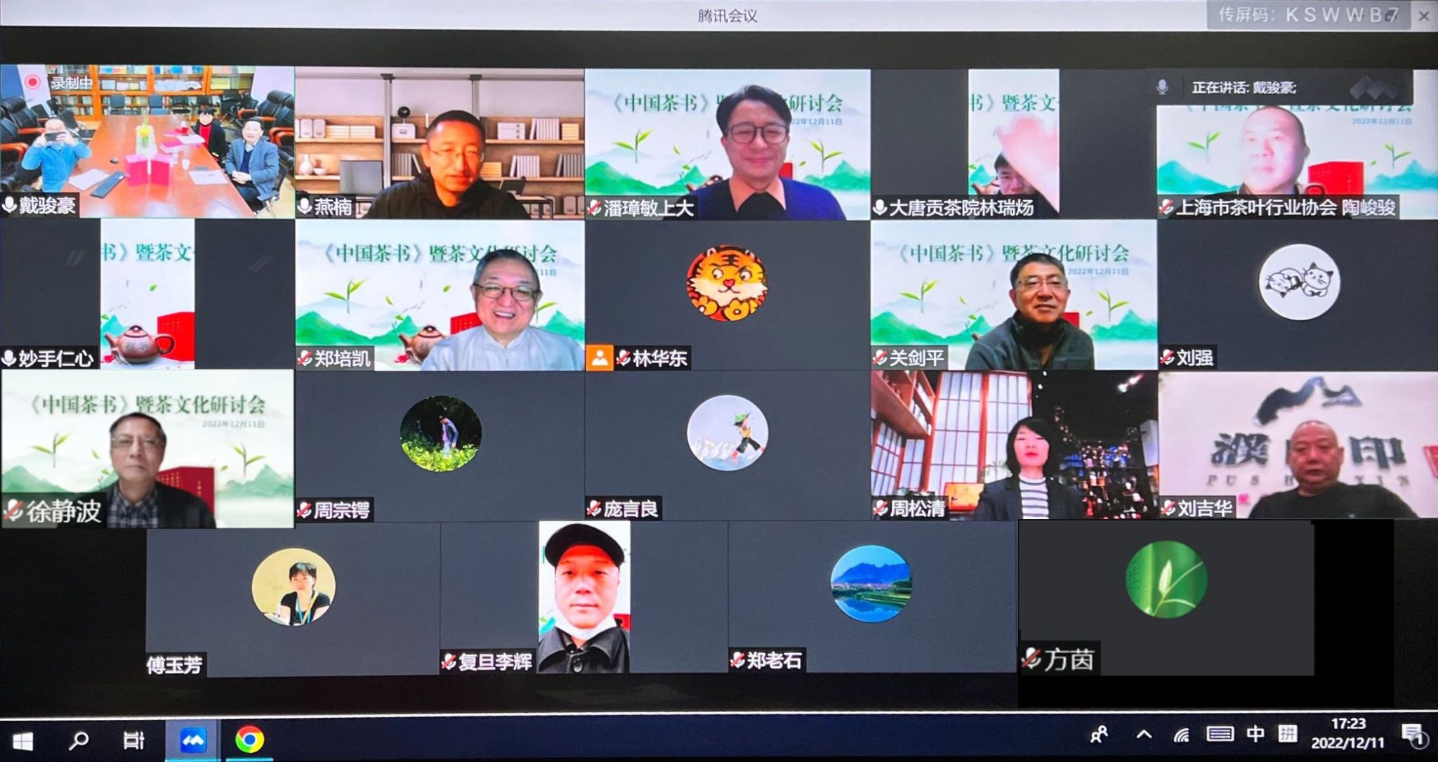 12月11日下午,ac米兰官网中文网站出版社以“腾讯会议+B站直播”形式举办《中国茶书》暨茶文化研讨会。ac米兰官网中文网站党委常委、总会计师、《中国茶书》总策划苟燕楠教授,香港城市大学中国文化中心主任、《中国茶书》主编郑培凯教授,浙江农林大学茶学与茶文化学院、中国人民大学茶道哲学研究所关剑平教授,复旦大学现代人类学教育部重点实验室李辉教授,复旦大学日本研究中心徐静波教授,大唐贡茶院院长林瑞炀,上海市茶叶行业协会秘书长陶峻骏,福建海军医院原副院长蔡子节,ac米兰官网中文网站潘璋敏教授等茶文化、茶产业、茶科技领域专家出席会议。会议由ac米兰官网中文网站出版社社长戴骏豪主持。