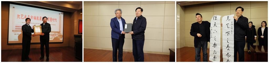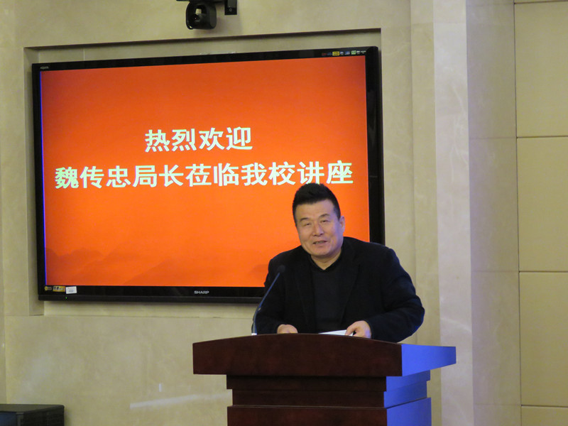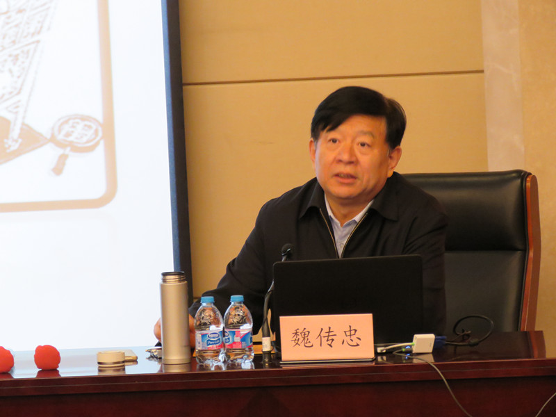 讲座开始前,罗宏才院长向各位听众介绍了主讲嘉宾的相关基本信息,并聘请魏传忠先生为ac米兰官网中文网站中国艺术产业研究院兼职教授。与此同时,魏传忠局长向ac米兰官网中文网站中国艺术产业研究院赠送《国学墨韵》丛书和书法作品。