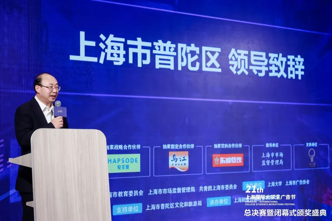 今年,上海市普陀区文化和旅游局作为命题单位之一,也以普陀苏州河的命题形式弘扬文化态度。普陀区委常委、宣传部部长刘东昌在致辞中表示:普陀区拥有中心城区最长的苏州河岸线,半程马拉松距离,普陀也呈现出强大发展潜力,特别数字广告,已经成为区域文创产业集聚增效新动能。大广节是上海文化创意领域中极具影响力和号召力的特色产业活动,期待更多高校学子借助这一优质平台,踊跃投身广告业发展的火热实践,充分迸发创新创业精神,让文化创意创造在广告行业竞相涌流。