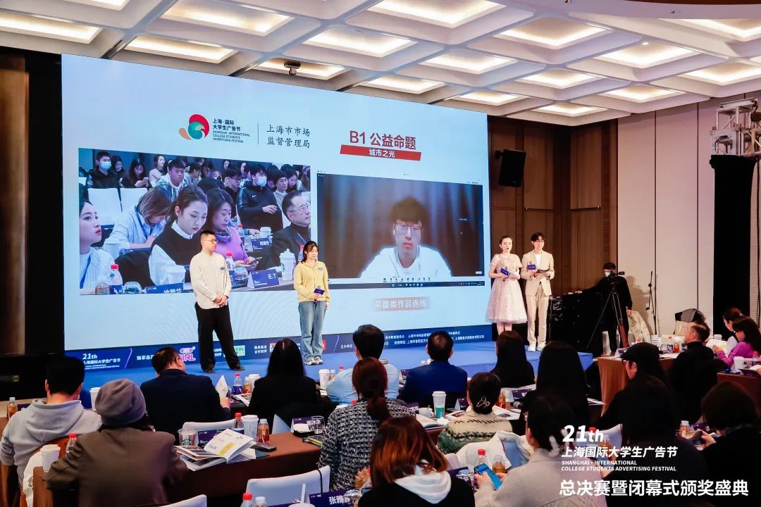 2023年2月24日,第21届上海国际大学生广告节总决赛暨闭幕式颁奖盛典在上海隆重举行。诸多重磅嘉宾齐聚现场,与参赛选手们碰撞创意,精彩接踵而至,上演了一场实力派选手的终极pk!在线直播观看累计突破40.5万人次。