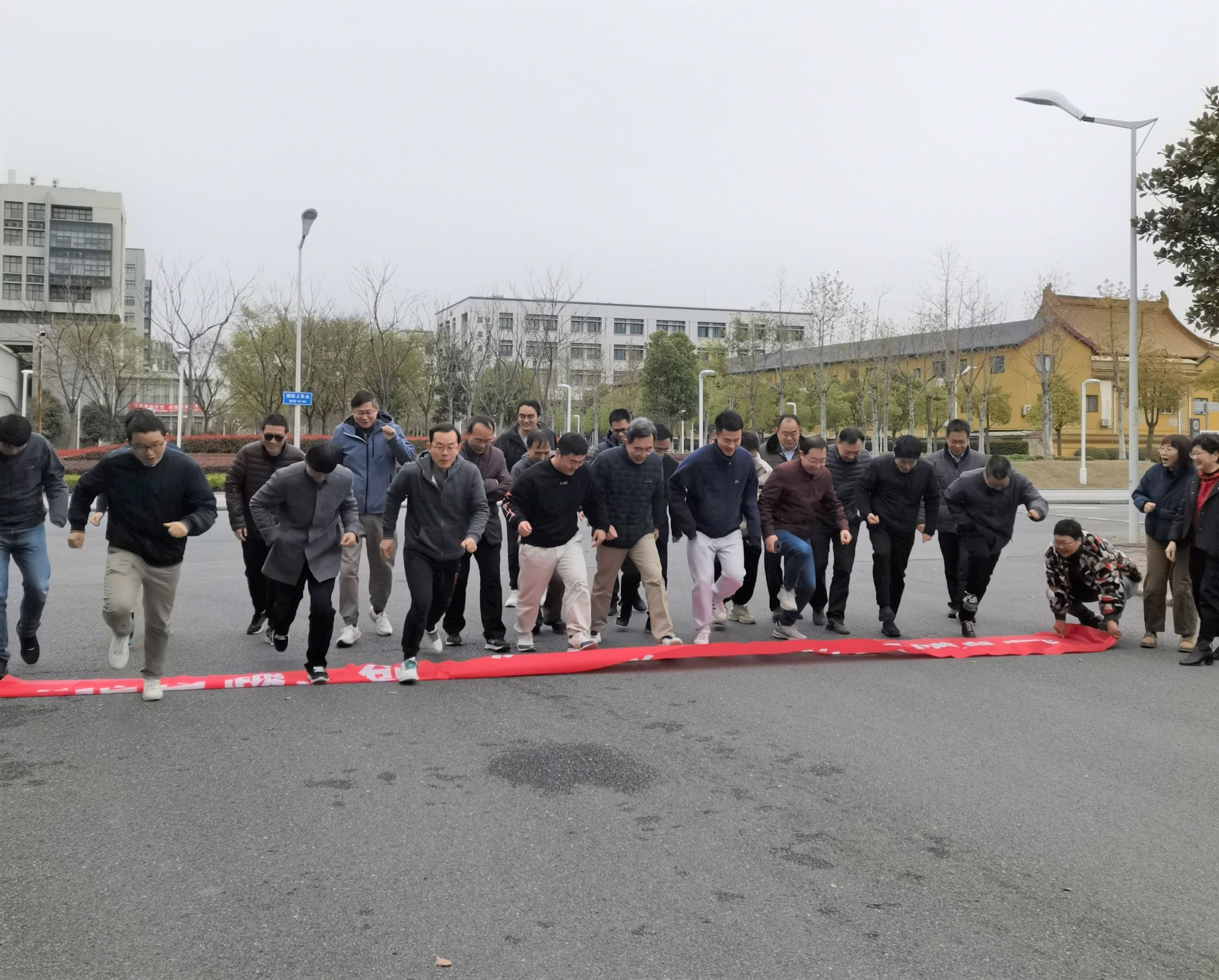 迎着初春的微风,老师们自环化大楼南侧路口出发,绕行18号楼、19号楼,沿着宁静的河畔一路向东,后经中庭花坛返回至环化学院大楼结束。奔跑途中,老师们共同感受春日风光、振奋精神面貌。