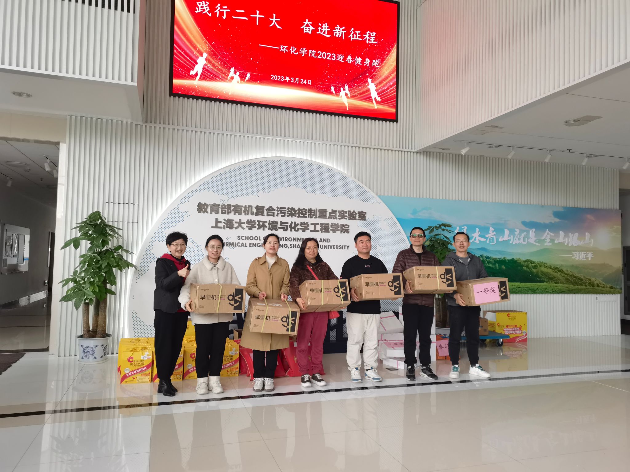 3月24日上午,为提高学院师生健身意识,引领广大师生以良好的精神风貌践行党的二十大精神,环化学院“2023迎春健身跑”活动在宝山校区东区火热开跑。本次迎春健身跑活动以“践行二十大,奋进新征程”为主题,全院100余名教职工参与本次活动,学院党委书记钱冬英、常务副院长王勇为活动鸣枪开跑。