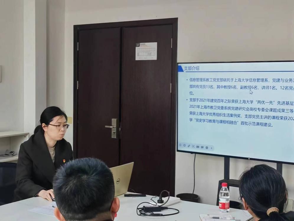 管理科学与工程系教工支部书记卢超对管理学院管理科学与工程系的基本情况进行介绍,并围绕“强化政治引领”、“落实‘三会一课’”、“服务中心工作”三方面介绍支部工作。
