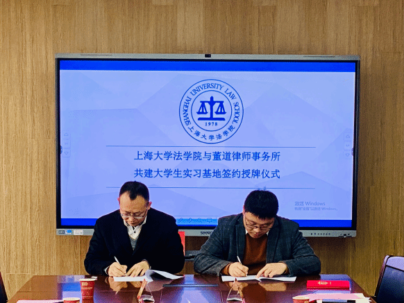 随后,举行了院所共建大学生实习基地签约授牌仪式。于伟和李琰炜律师分别代表法学院和董道律师事务所签署共建协议,并举行“ac米兰官网中文网站法学院学生实习基地”授牌仪式。