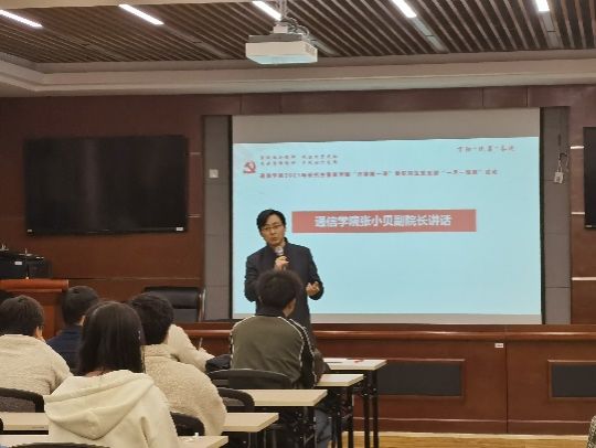 为学习贯彻习近平总书记对深入开展学雷锋活动作出的重要指示精神,进一步传承和弘扬雷锋精神,学习宣传贯彻党的二十大精神和全国两会精神,以实际行动助力提速攻坚突破,3月26日晚,通信学院2023年研究生春季学期“开学第一课”暨研究生党支部“一月一观摩”活动在翔英大楼T516顺利举行。本次活动以“聚焦两会精神,提速攻坚突破;传承雷锋精神,争做时代先锋”为主题,由通信学院2022级研究生第三党支部和2021级研究生第三党支部共同承办。通信学院副院长张小贝、研究生辅导员靳佳敏和陈安琪出席活动,通信学院各研究生党支部书记、班长、团支书以及党团研学生骨干线下参加活动,其他研究生全部线上参会。本次活动由通信学院2022级研究生第三党支部书记贺建宇主持。