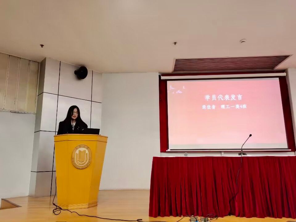 来自理工一类4班的栾佳音同学作为学员代表发言。他表示作为入党积极分子,应正确理解党的宗旨,努力实践、开拓进取,爱国爱党爱人民,听从并响应党的号召,争做优秀的入党积极分子,并早日成为一名合格的共产党员,为实现中华民族伟大复兴贡献自己的力量。