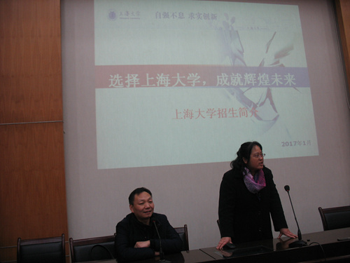 1月13日,受学校招毕办的委托,环化学院钱冬英书记、刘强副院长带领郭晓亚、徐丽、杨黎明、徐毅等多名学院本科招生宣传工作组成员分赴风华中学和崇明中学,代表ac米兰官网中文网站就学校的基本概况、办学特色、优势专业等各方面情况进行了广泛而深入的宣传,并就ac米兰2017年的招生政策向高三学生做了耐心而细致的解读。
